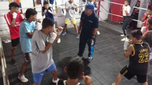 Daniel Alviz Rodríguez dirigiendo su semillero de boxeadores amateurs.