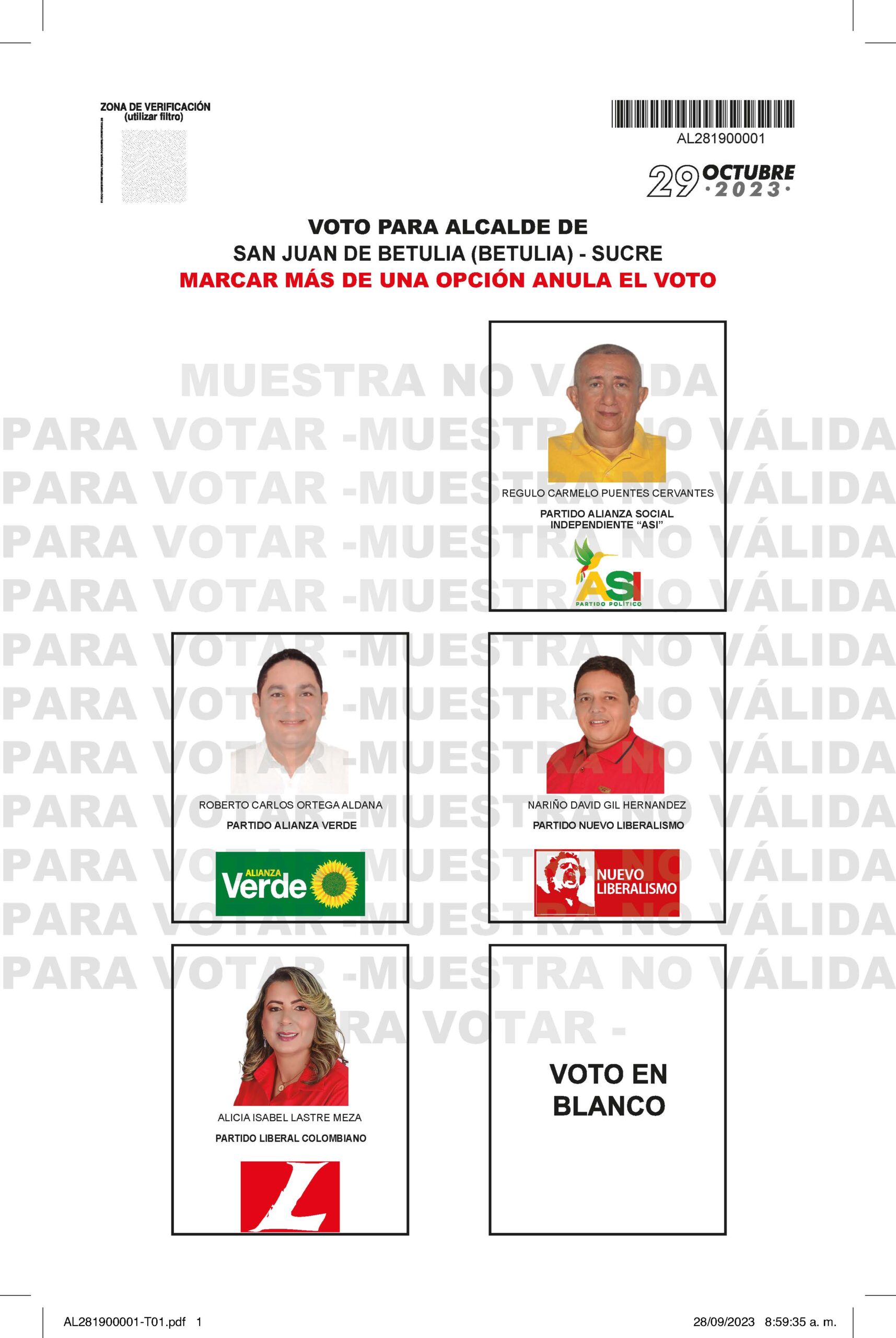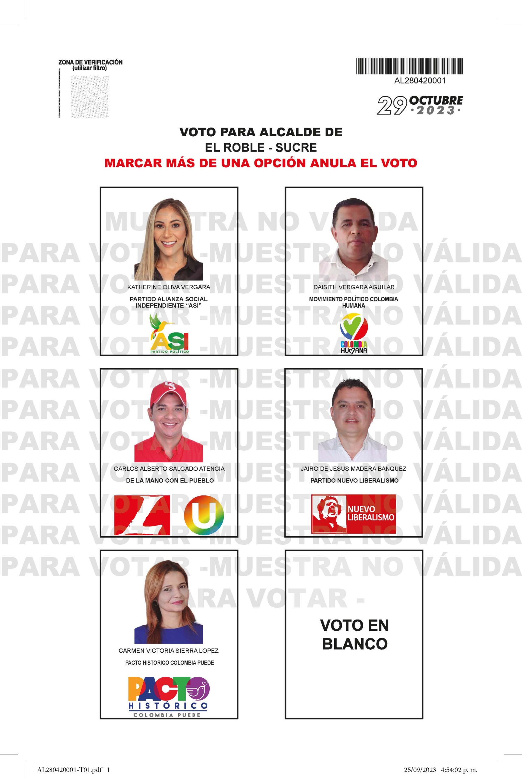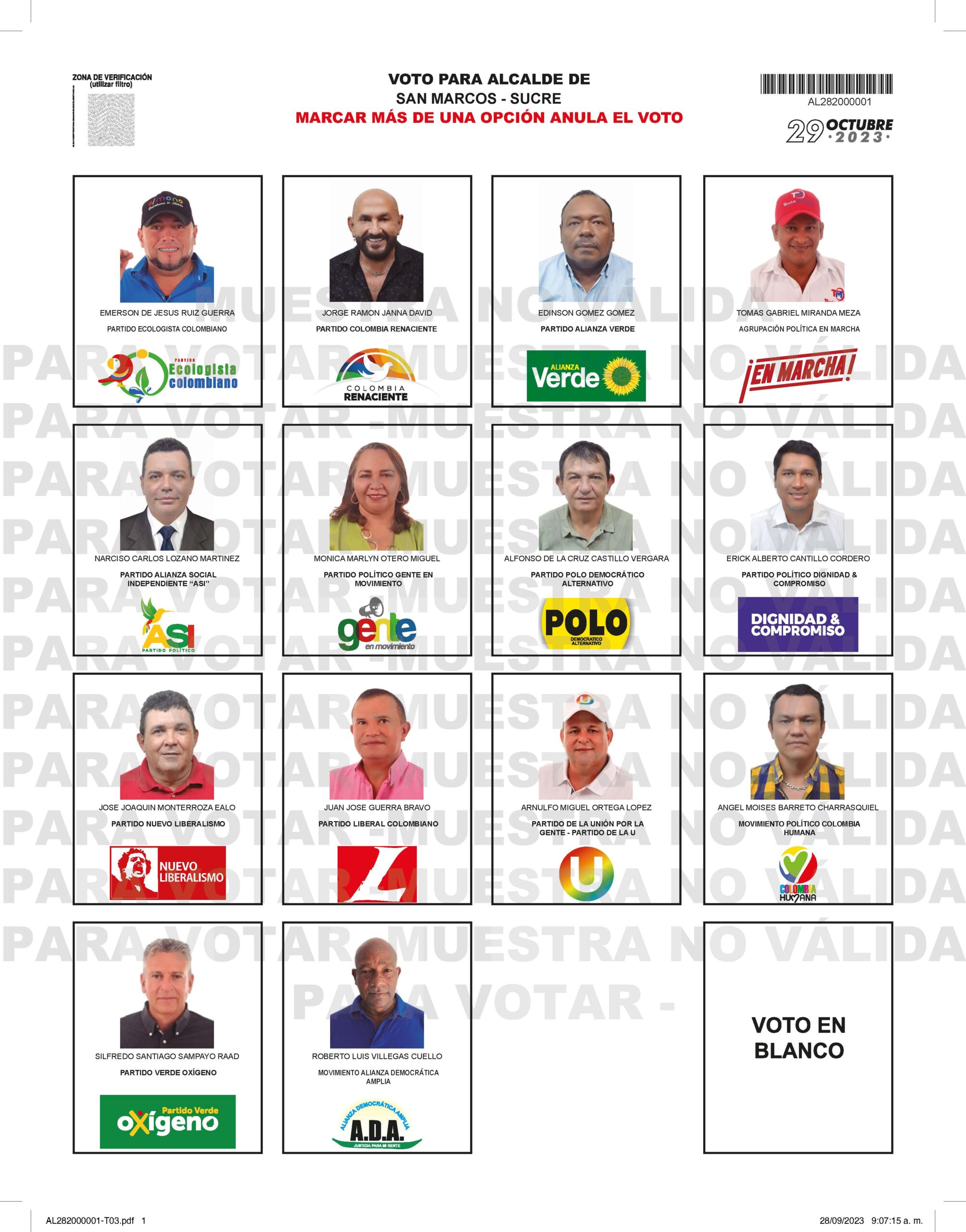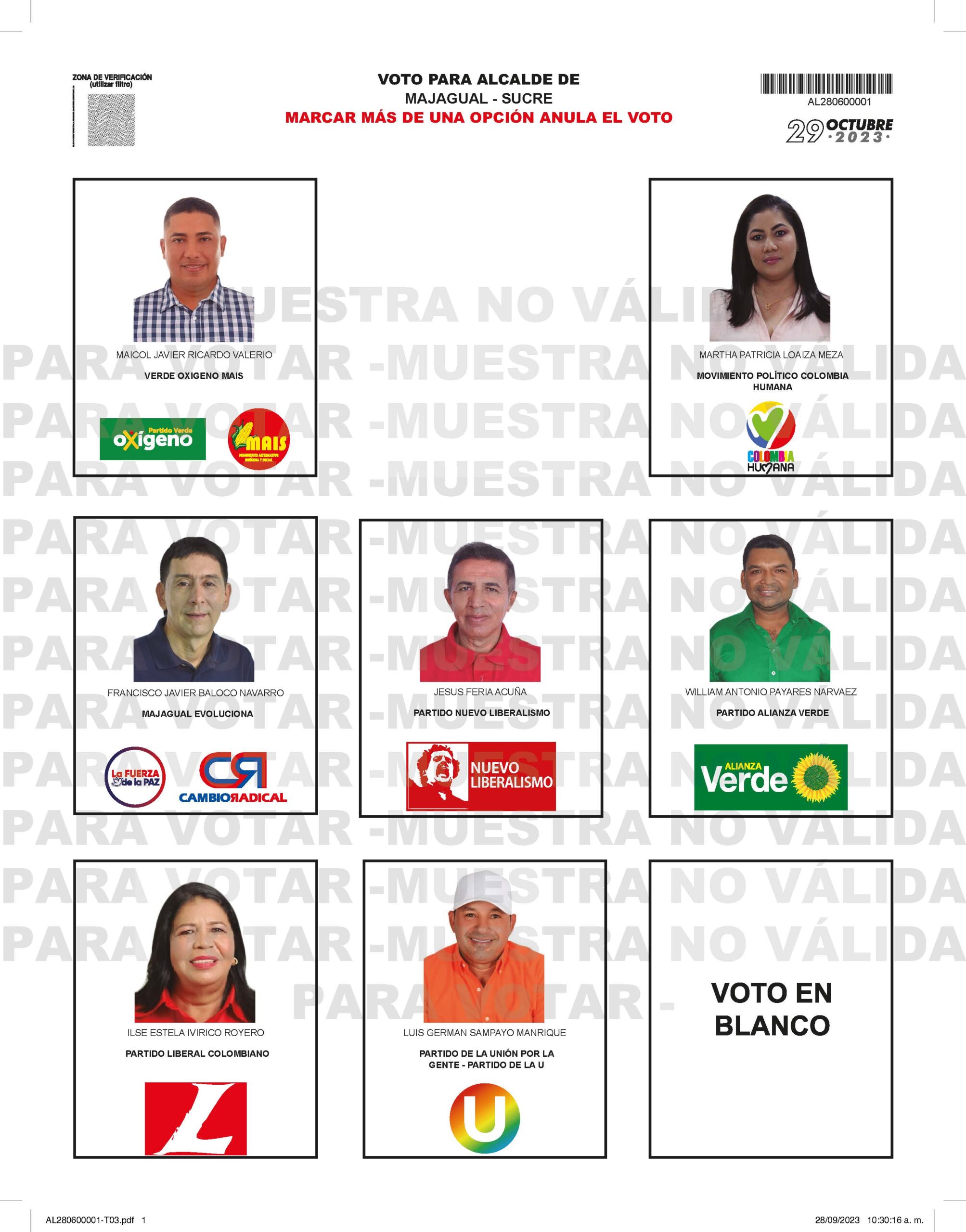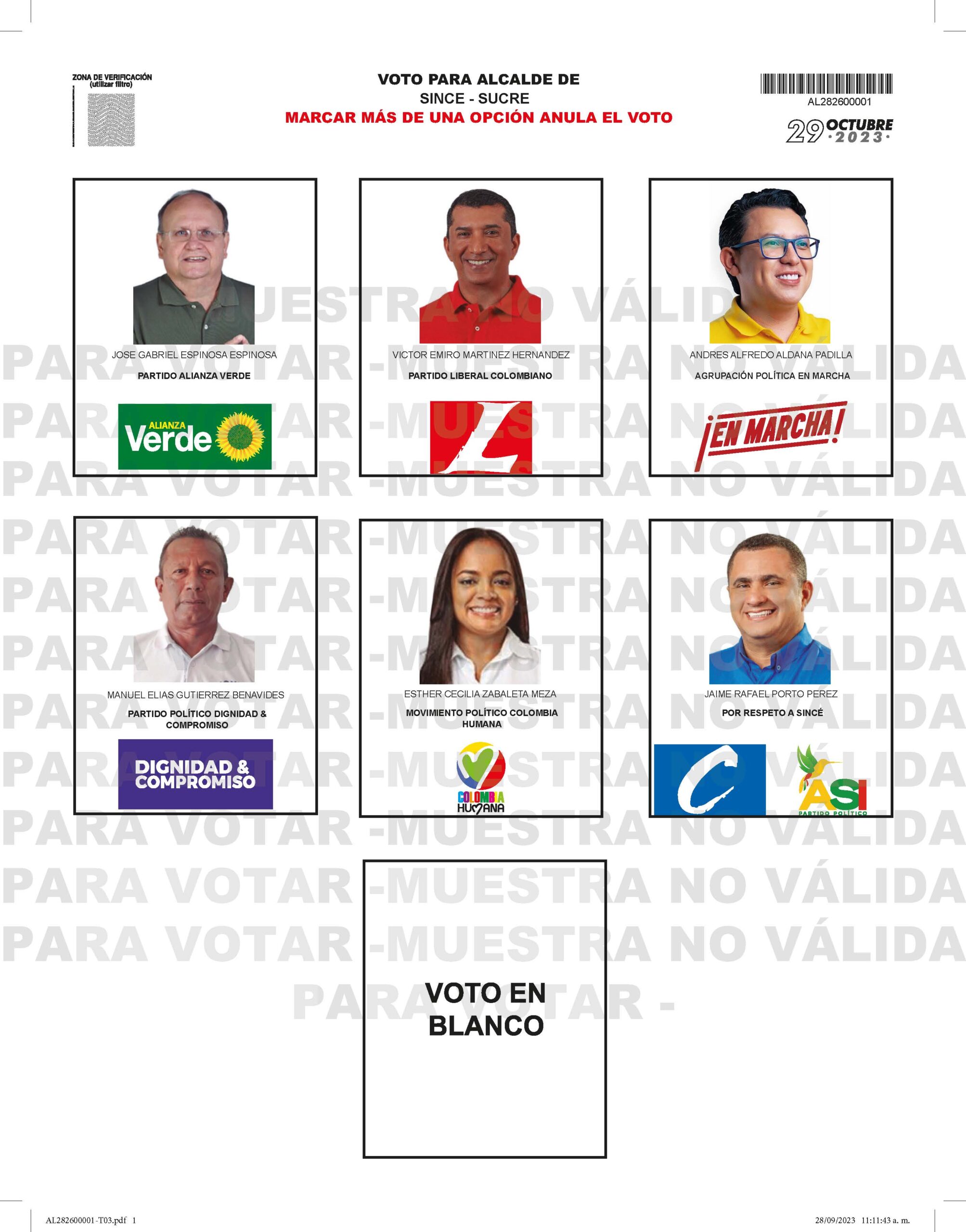 La entidad informó que hasta el pasado 8 de septiembre se dio trámite a las renuncias de candidatos, para excluirlos de estos instrumentos de votación y presentó el formato final de dichos documentos, resultando así los correspondientes a las alcaldías de los diferentes municipios del departamento de Sucre: