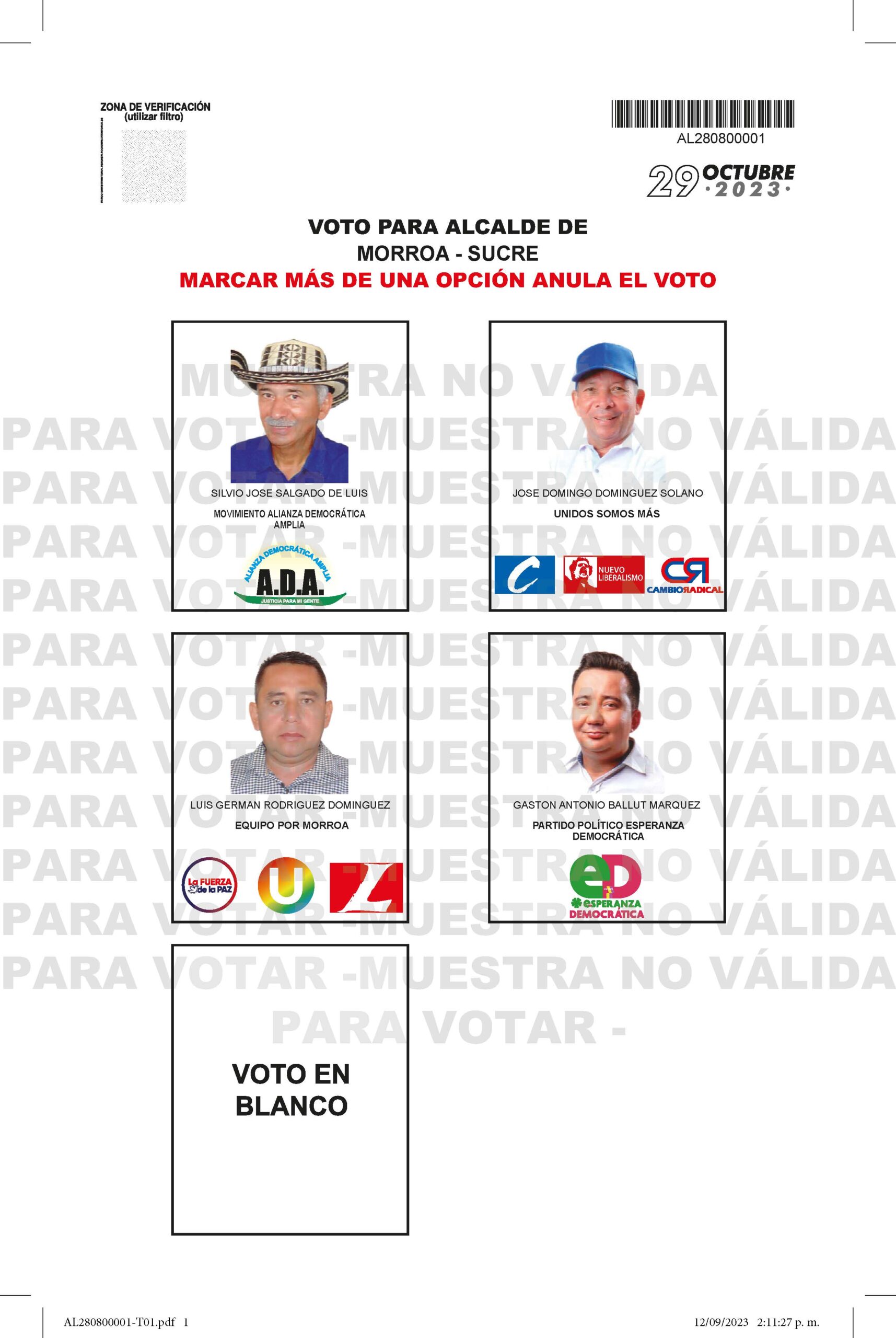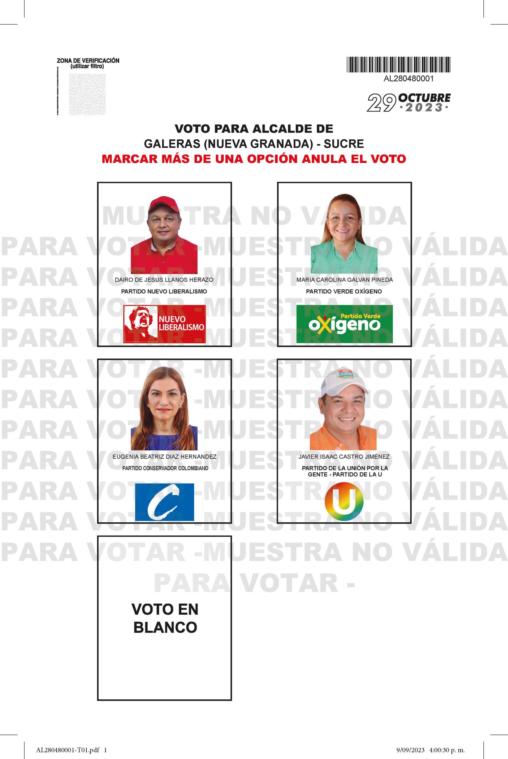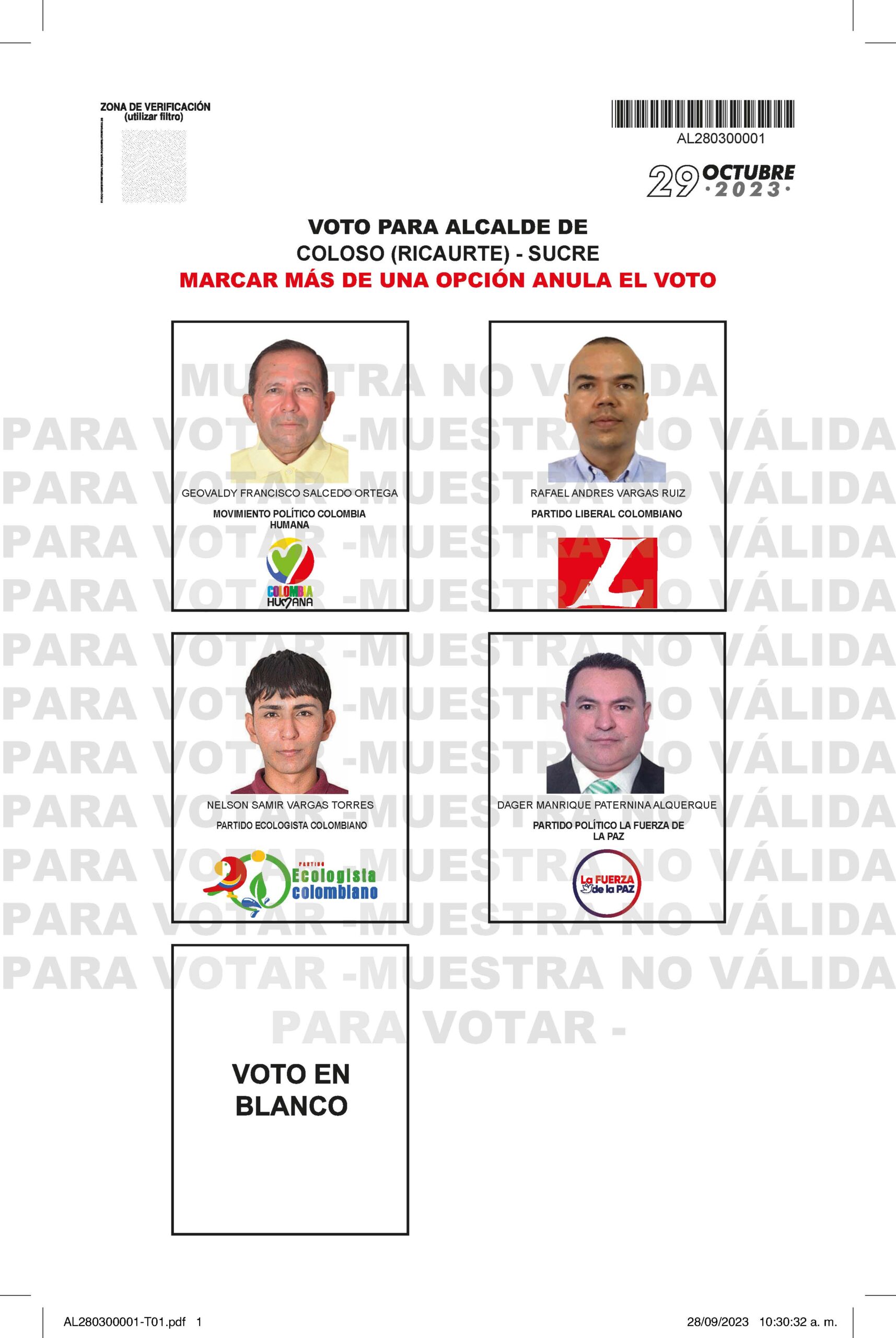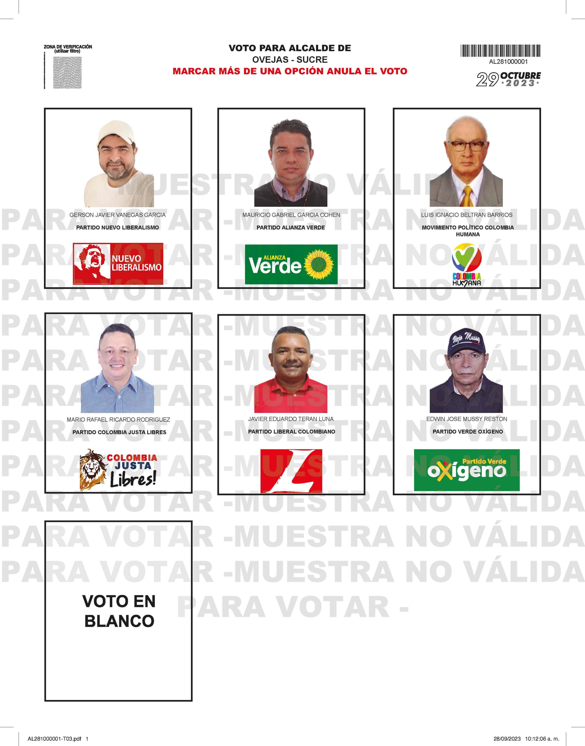 La entidad informó que hasta el pasado 8 de septiembre se dio trámite a las renuncias de candidatos, para excluirlos de estos instrumentos de votación y presentó el formato final de dichos documentos, resultando así los correspondientes a las alcaldías de los diferentes municipios del departamento de Sucre: