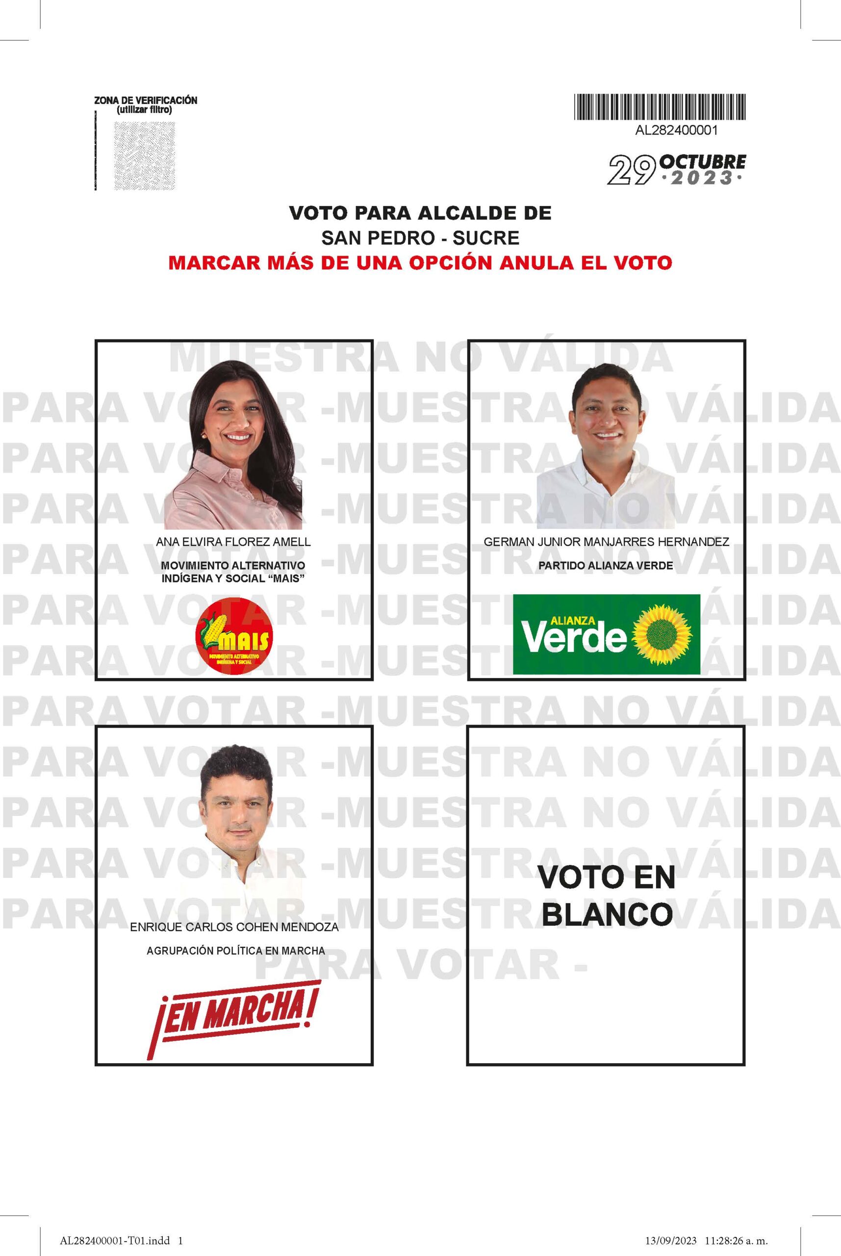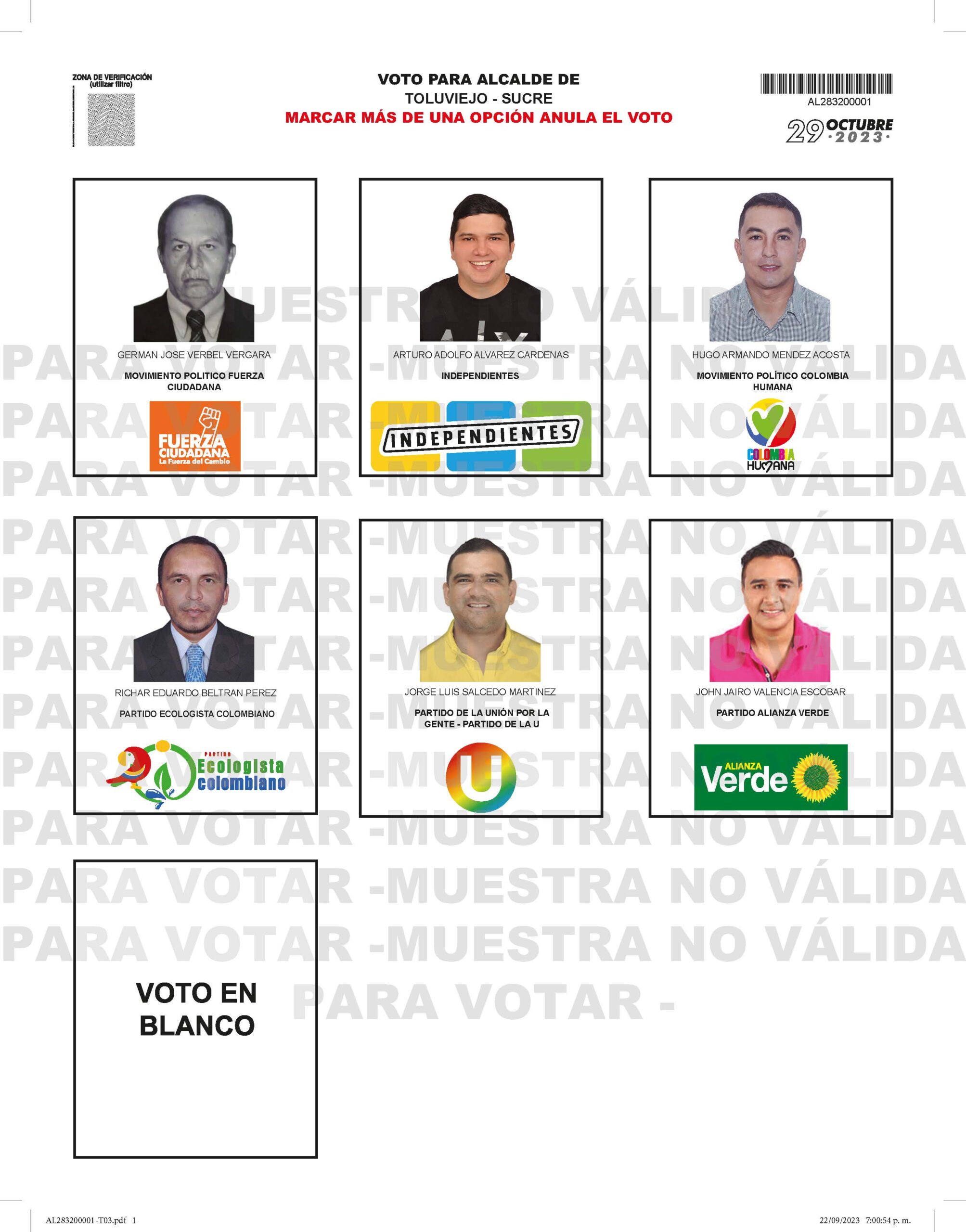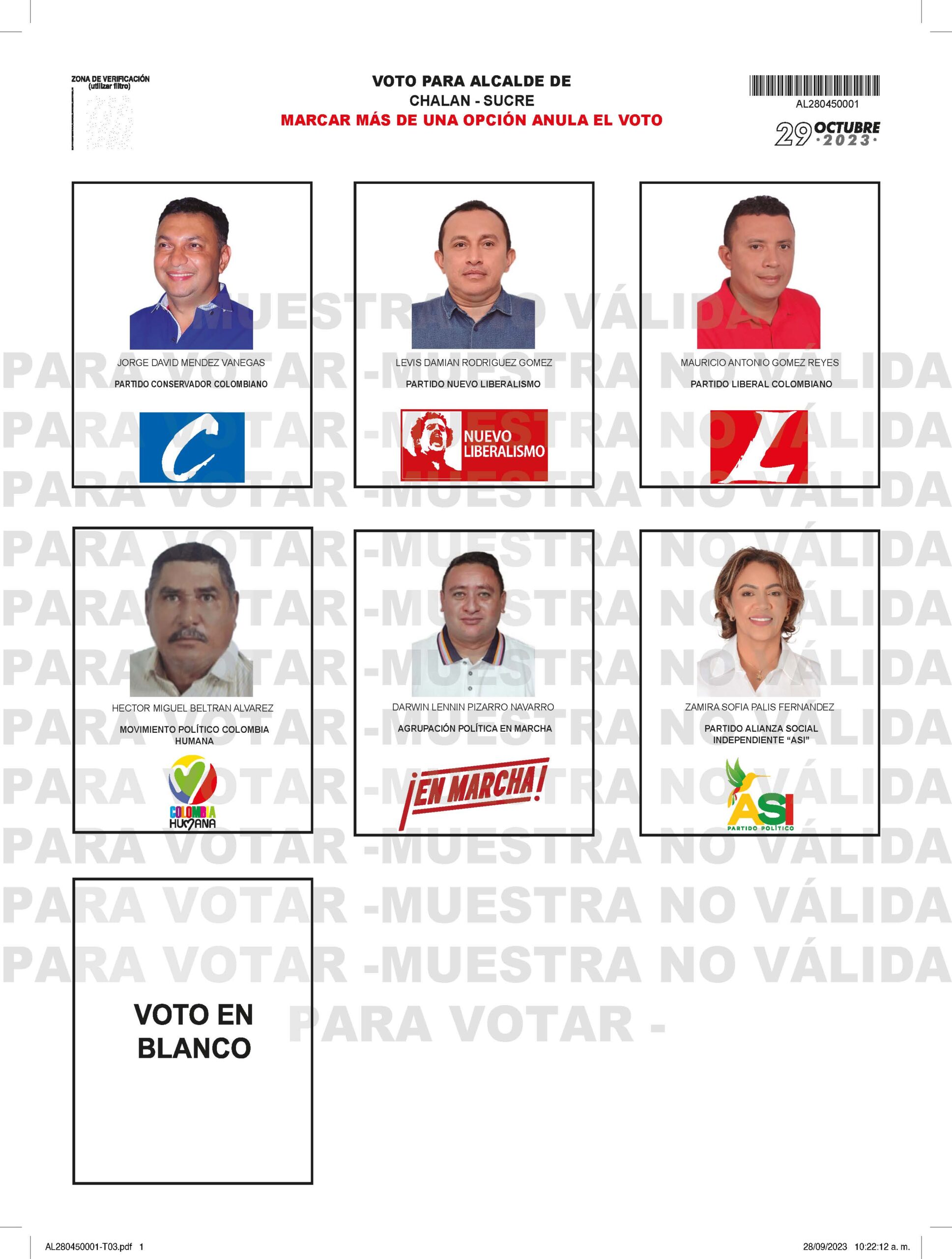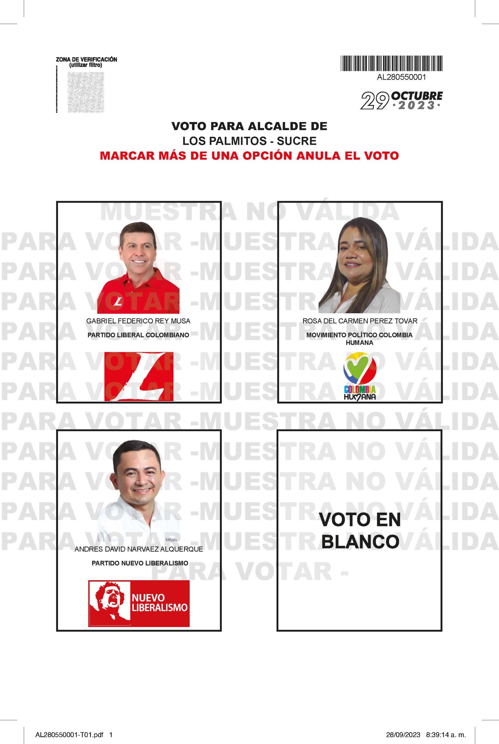 La entidad informó que hasta el pasado 8 de septiembre se dio trámite a las renuncias de candidatos, para excluirlos de estos instrumentos de votación y presentó el formato final de dichos documentos, resultando así los correspondientes a las alcaldías de los diferentes municipios del departamento de Sucre: