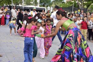 Entre las atracciones destacadas estuvo la Pista de Desafíos de Juegos, donde padres e hijos participaron en competencias diseñadas para fortalecer la unión familiar. La Fundación Afrocarnaval también sorprendió al público con una puesta en escena folclórica llena de ritmo, tradición y fantasía.