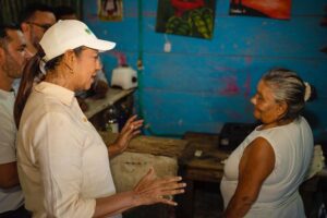 Lucy García, gobernadora de Sucre, celebra con una de las usuarias.