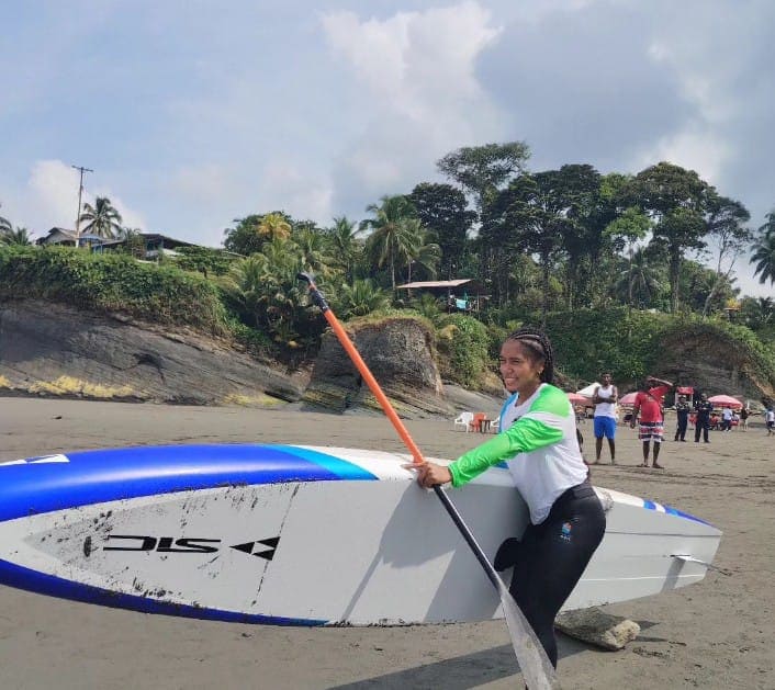 La surfista toludeña María Alejandra Buelvas ganó el primer metal dorado, al coronarse campeona en la prueba de Sup Race, que se desarrolló en Buenaventura, Valle del Cauca.