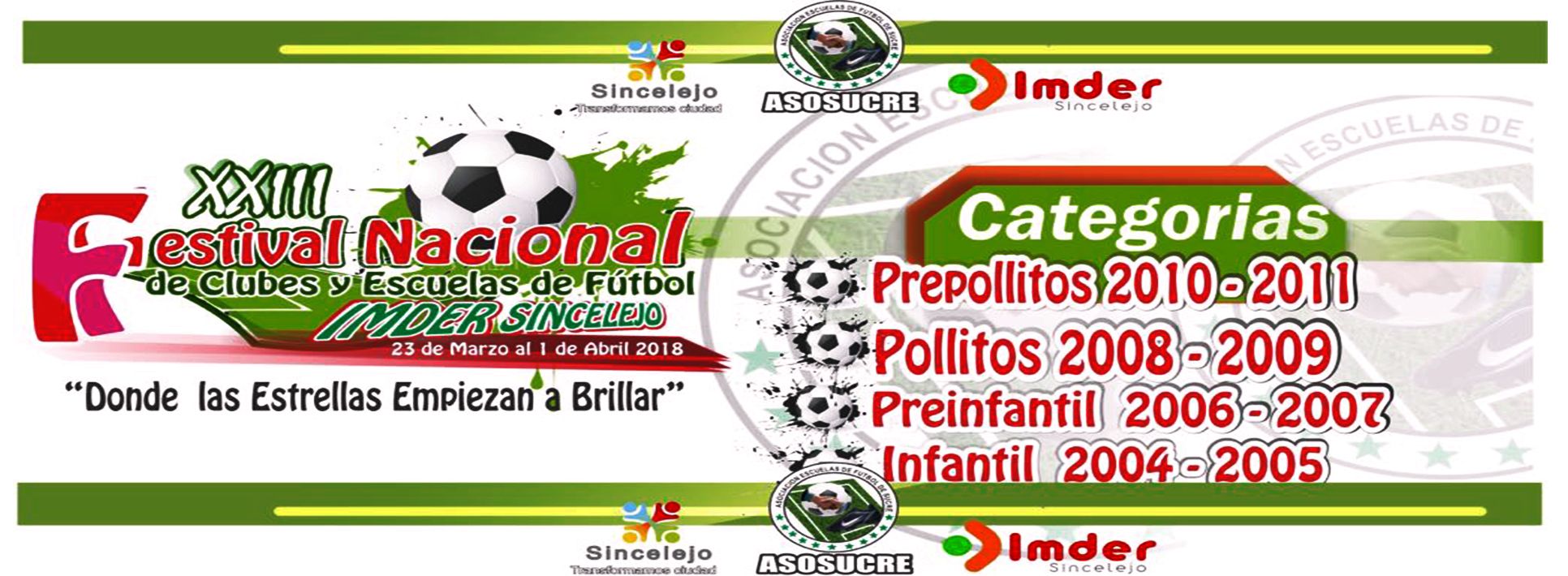 Se aproxima la tradicional fiesta futbolera en Sincelejo con el XXIII Festival Nacional de Clubes y Escuelas de Fútbol 2018. El evento se llevará a cabo del 23 de marzo al 1 de abril durante la Semana Santa, donde participarán alrededor de 4 mil 200 niños. En esta oportunidad, competirán por los cuatro títulos en disputas 38 escuelas nacionales y 46 locales. De ellas 15 del departamento del Atlántico, 3 de Antioquia, 9 de Bolívar, 1 de Norte de Santander, 1 de La Guajira, 3 del Cesar y 6 de Córdoba.