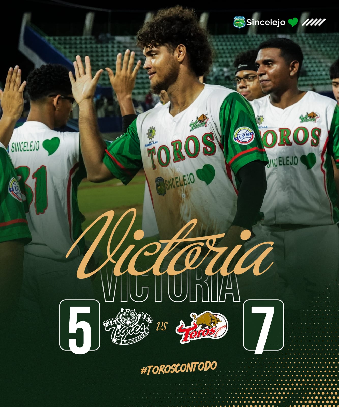 Los Toros de Sincelejo demostraron garra y corazón al remontar un partido que parecía perdido, venciendo 7-5 a Tigres de Cartagena en el Estadio 20 de Enero.